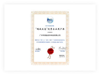 鵬城生態優秀企業用戶獎